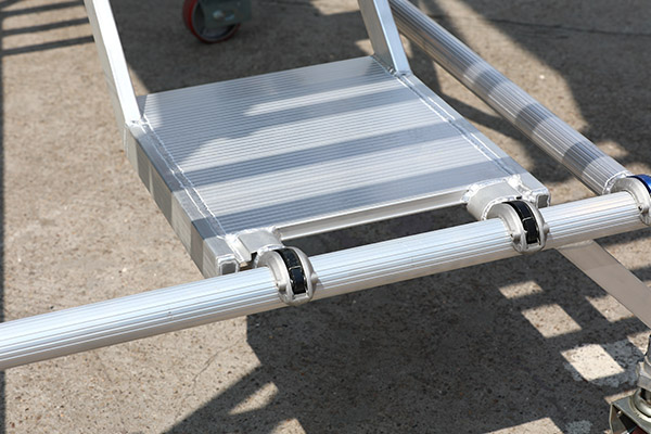 底部加裝腳輪調(diào)節(jié)桿,可以根據(jù)地面平整度調(diào)節(jié)大約30CM的落差。采用高強(qiáng)度,耐腐蝕鋁合金材料